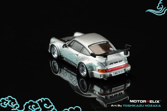 Motorhelix 1:64 Alloy Model Porsche 911 964 RWB (1990) Silver-Fenix Electroplated with 964 Air-cooled Independent Engine