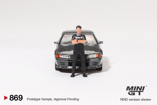 MINI GT #869 1/64 Nissan Skyline GT-R (R32) Gunmetal W/ Matsuda Figure Tsugio Matsuda Collection