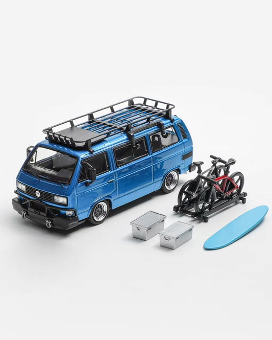 Mortal 1:64 VW Type 2 T3 (Carrera Bus B32) Lowride With BBS Rim Transparent Blue