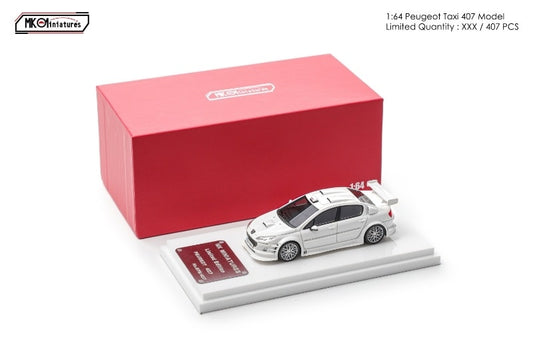 MK Miniatures 1:64 Resin Model TAXI White Color Peugeot 407 Sedan
