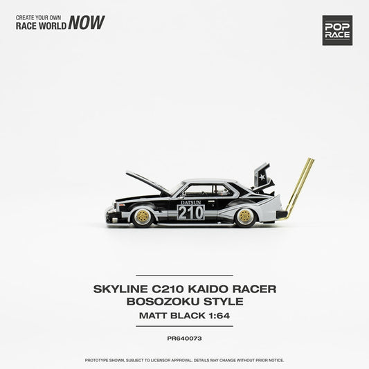 POPRACE 1/64 SKYLINE C210 BOSOZOKU STYLE MATT BLACK PR640073