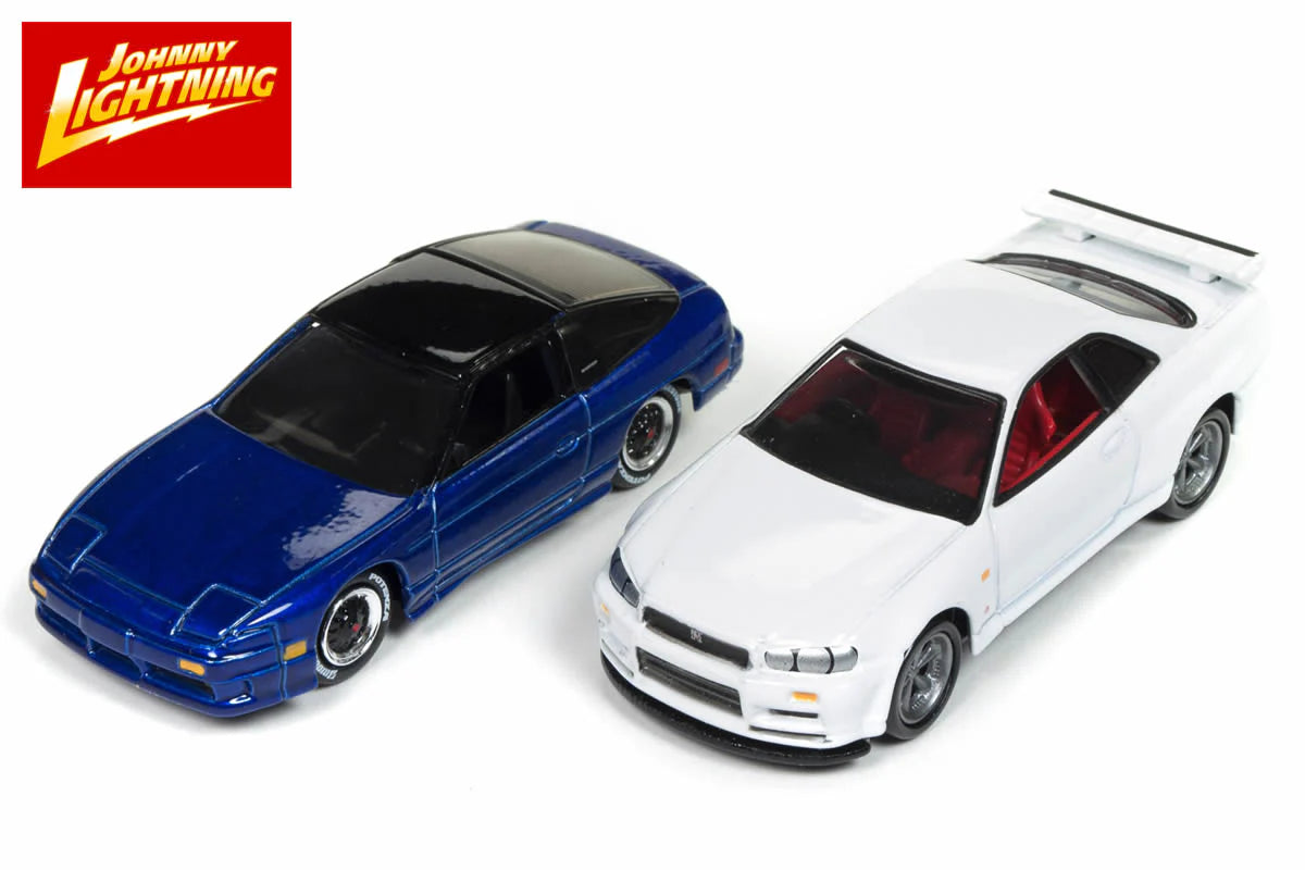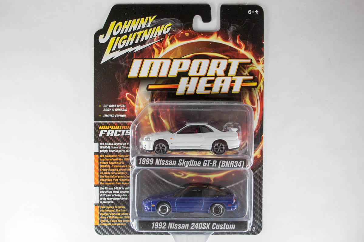 JOHNNY LIGHTNING IMPORT HEAT 2-PACK – 1992 NISSAN 240SX CUSTOM & 1999 NISSAN SKYLINE GT-R (BNR34)