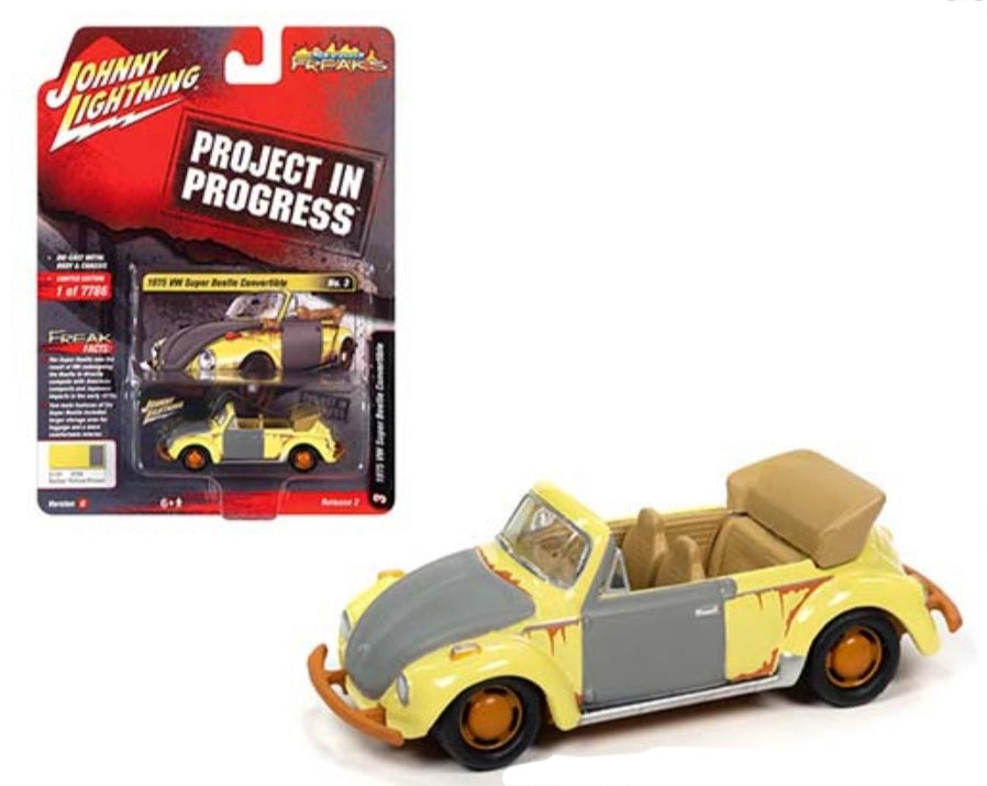 Johnny Lightning 1:64 Street Freaks 2021 Release 2A - 1975 Volkswagen Super Beetle Project in ProgressYellow