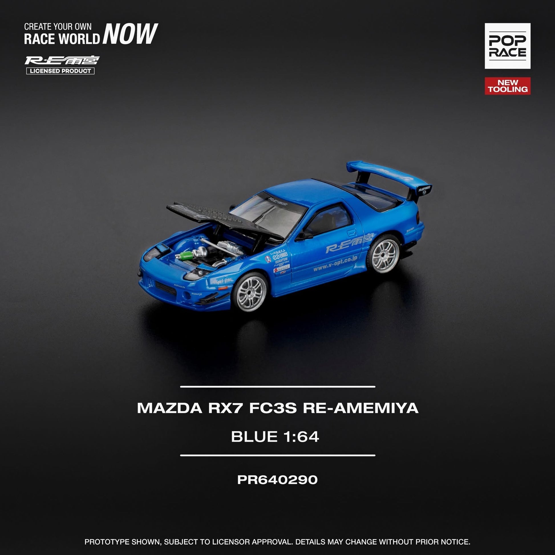 * PRE ORDER * POP RACE 1/64 MAZDA RX7 (FC3S) RE-AMEMIYA - RE-AMEMIYA BLUE (NEW TOOLING) PR640290
