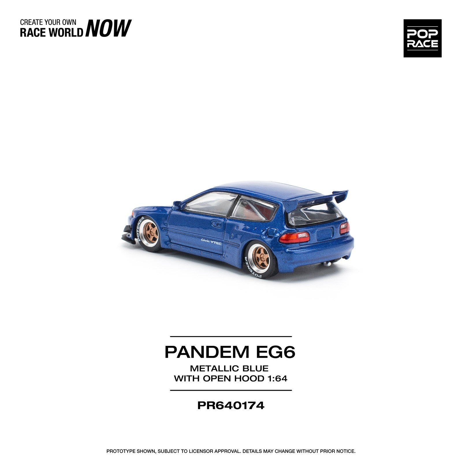 * PRE ORDER * POPRACE 1/64 PANDEM CIVIC EG6 METALLIC BLUE WITH OPEN HOOD PR640174